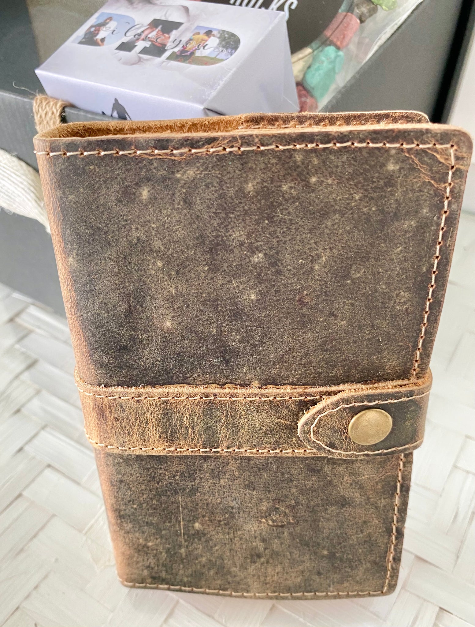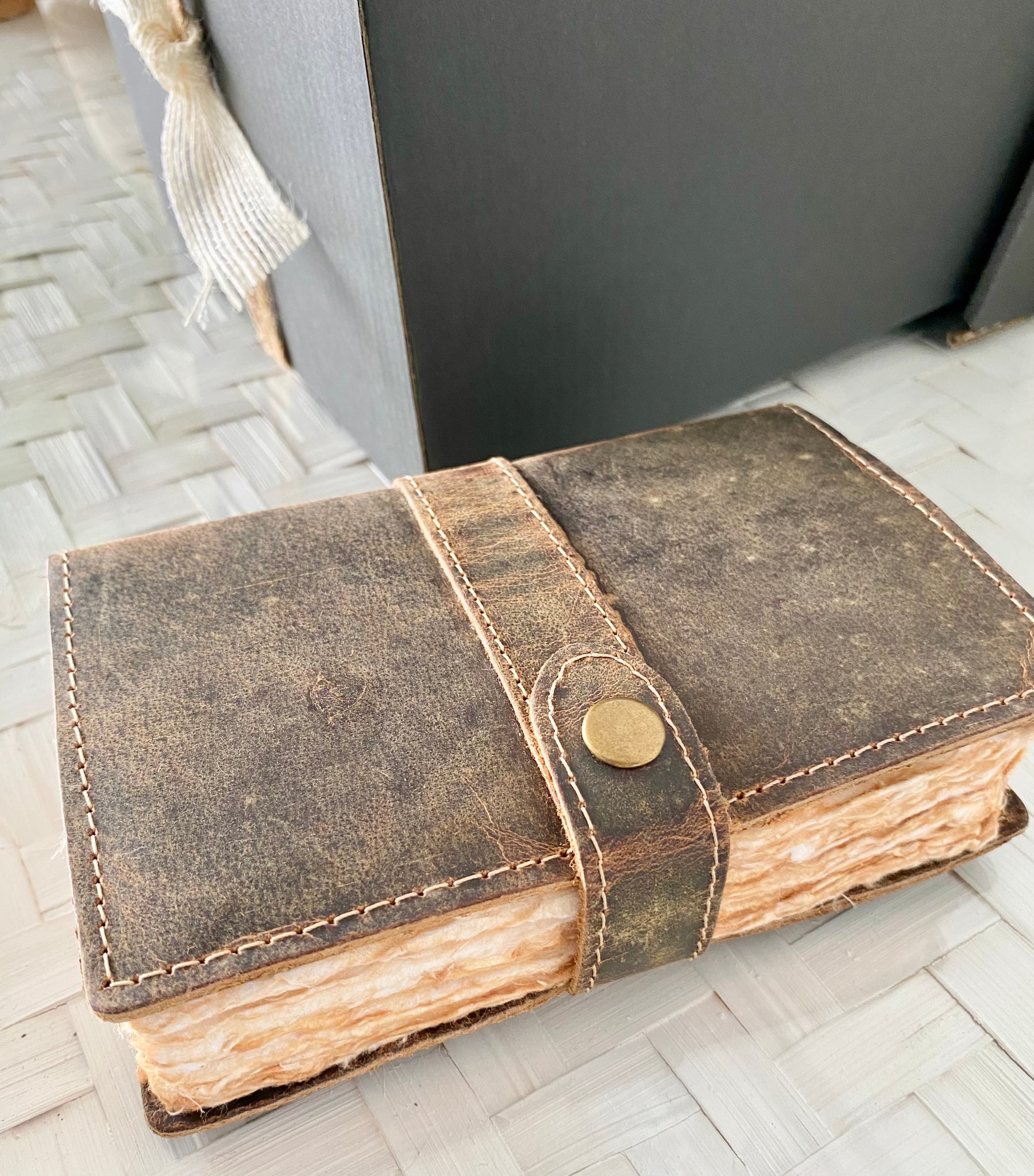 Leather bound Book - Beautiful leather bound book with lovely aged pages for him to write in.