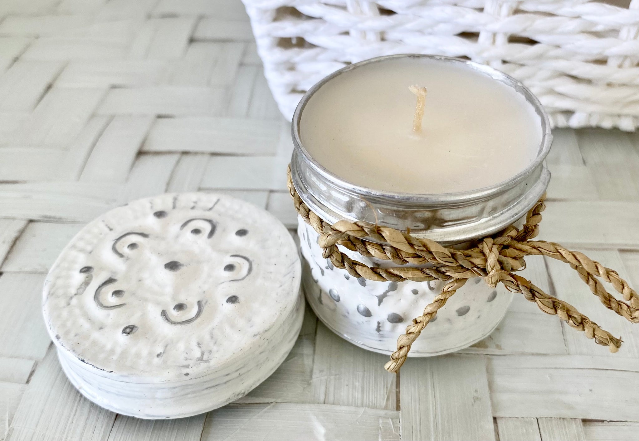 Candle - Cute little candle in washed metal vanilla scent